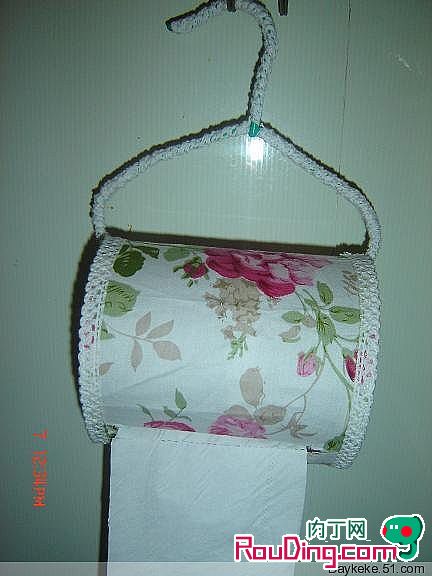 3.最后用粗电线做一个架子把卫生纸和纸架挂上就可以了